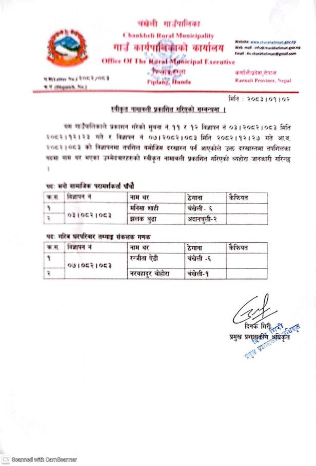 चंखेली गाउँपालिका करार कार्मचारी दरखास्त फाराम